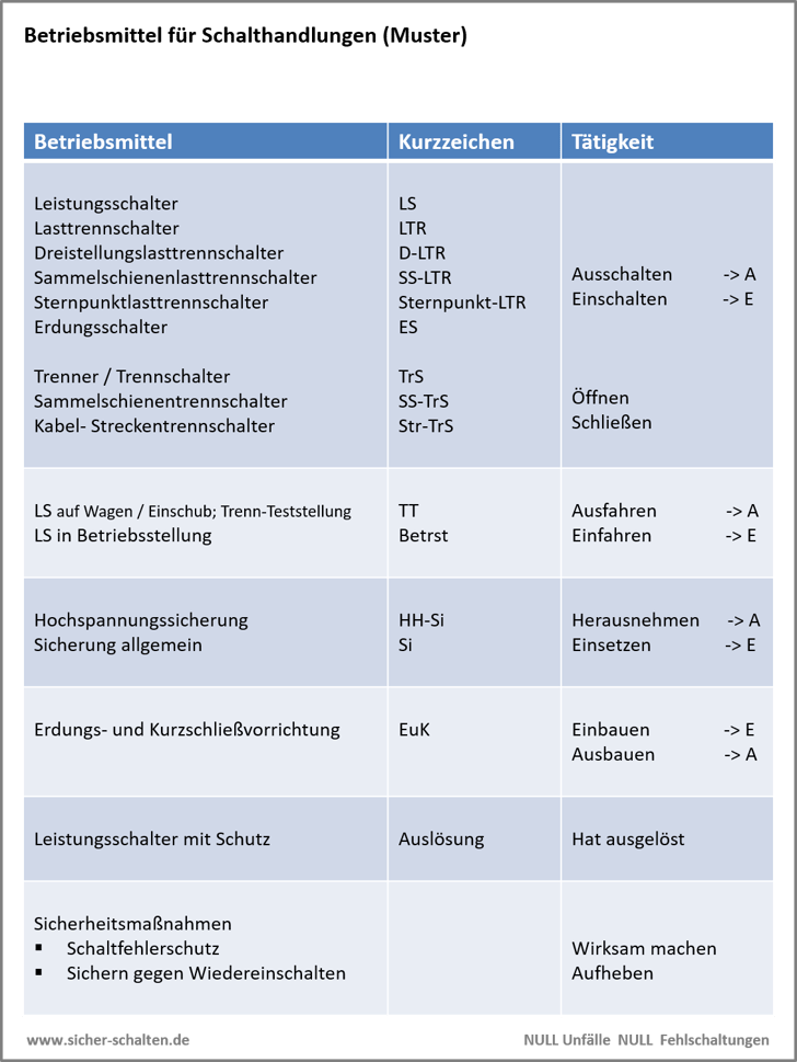 in diesem Artikel geht es um eindeutige Schaltgespräche, die Bezeichnung der Schaltgeräte / Betriebsmittel und die zugehörigen Schaltzustände.